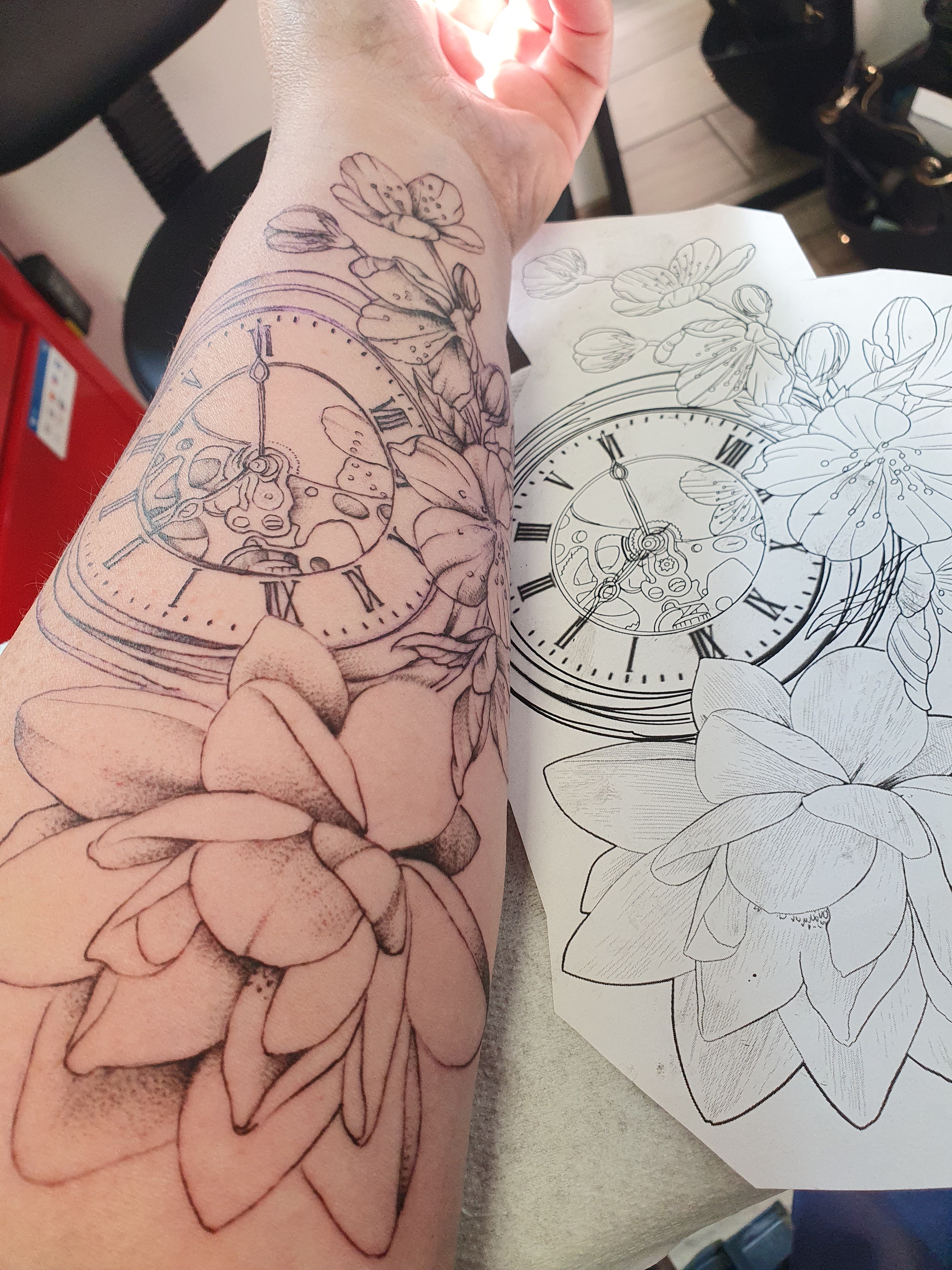 Une manchette comme projet initial qui s'est vite transformé en bras complet. Chloé est très talentueuse, à l'écoute et très arrangeante. Le reste de l'équipe est top et tout le monde travail dans la bonne humeur. D'autres projets déjà en tête😍