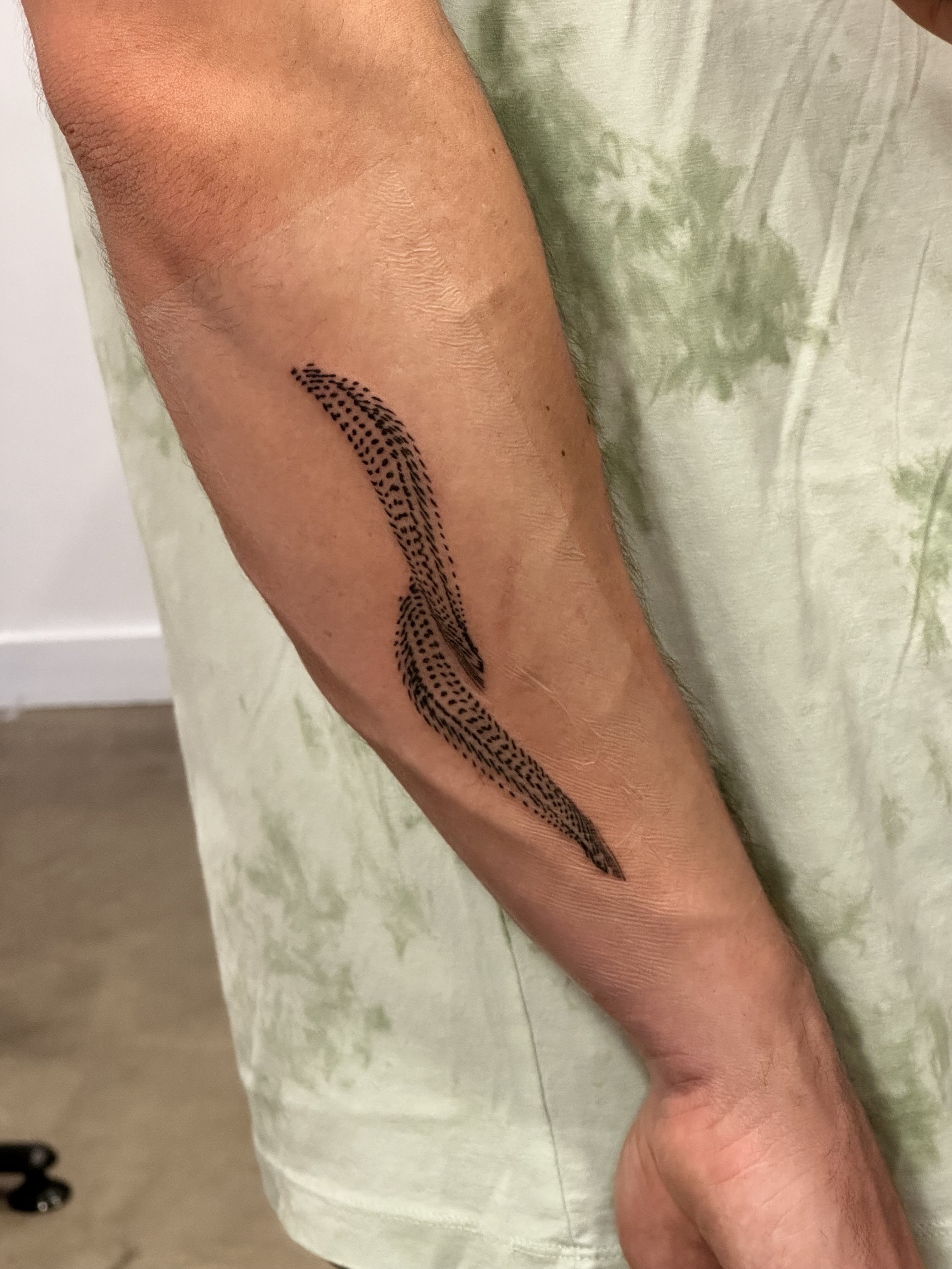 Je me suis fait piquer par Nuit grise et franchement, une session impeccable ! Je suis quelqu’un de pointilleux et Nuit grise n’a pas hésité à modifier et réimprimer plusieurs versions de son flash pour en trouver une qui me convenait Nous avons aussi prit le temps d’essayer plusieurs tailles sur mon bras avant d’attaquer Il est de très bon conseil et n’hésite pas à dire ce qui serait le mieux pour avoir un projet parfait Il est très perfectionniste sur son travail et ne vous laisse pas partir tant qu’il n’est pas satisfait Au final que demander de plus !