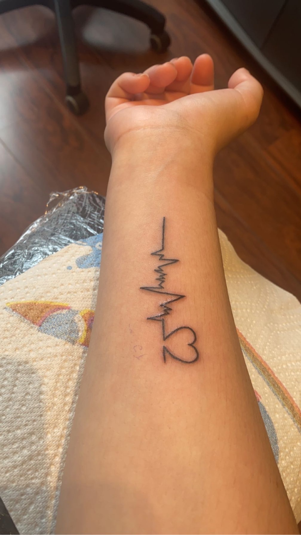 Tatouage fait aujourd'hui, que dire à part que ces un super salon de tatouage ? Tatouée par Alice aujourd'hui pour les deux prénoms de mes enfants et je suis tombé sur une professionnelle exceptionnelle. Tellement douée, gentille et douce. Les prénoms ont été fait par sa propre création pour la tipographie et honnêtement ces tellement bien fait, Si vous voulez un salon de tatouage propre, à l'écoute, et doté d'un vrai talent foncer chez Inkyblood. Encore merci Alice pour ce souvenir que je garderai à vie et que je serais fière d'exposer !