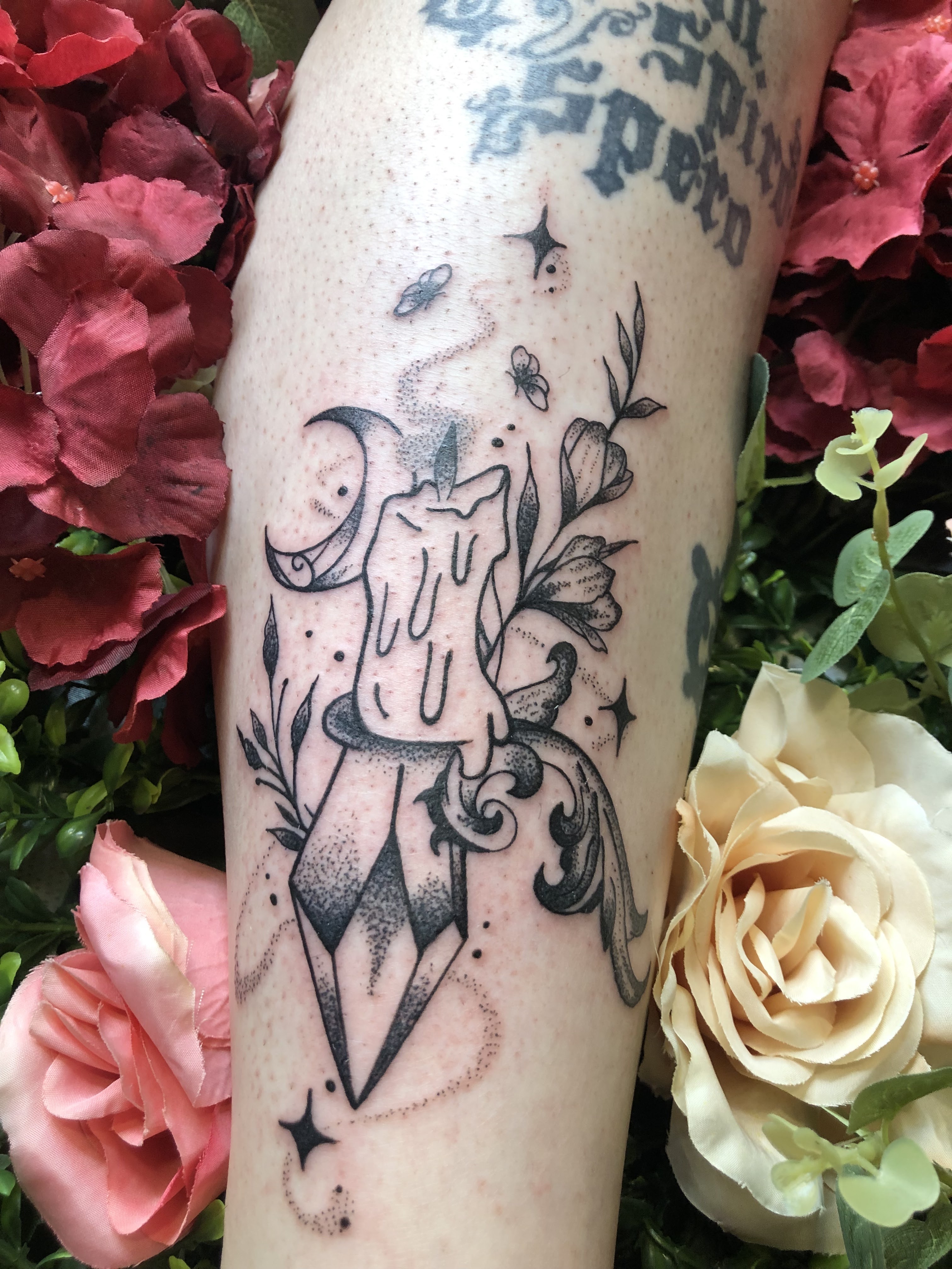 Quelle belle rencontre ! Un projet hommage qui me tenait à cœur depuis plusieurs années, sans rencontrer le trait de crayon qui me déciderait. Jusqu’à croiser la page Instagram de Wicca. Un coup de foudre pour son style, et une surprise encore plus agréable en discutant avec elle. Trois heures de route bien méritées ! C’est une belle personne, honnête, attentionnée. Le salon est facile d’accès, confortable, adorablement décorée. Le geste est sûr, je n’ai ressenti aucune douleur (ce n’était pas mon premier tatouage). Un protocole de soins clair, une disponibilité pendant la cicatrisation appréciable. Ra-vie! Et puis qu’il est beau mon petit Kero 💫 je recommande ET je reviendrai :)